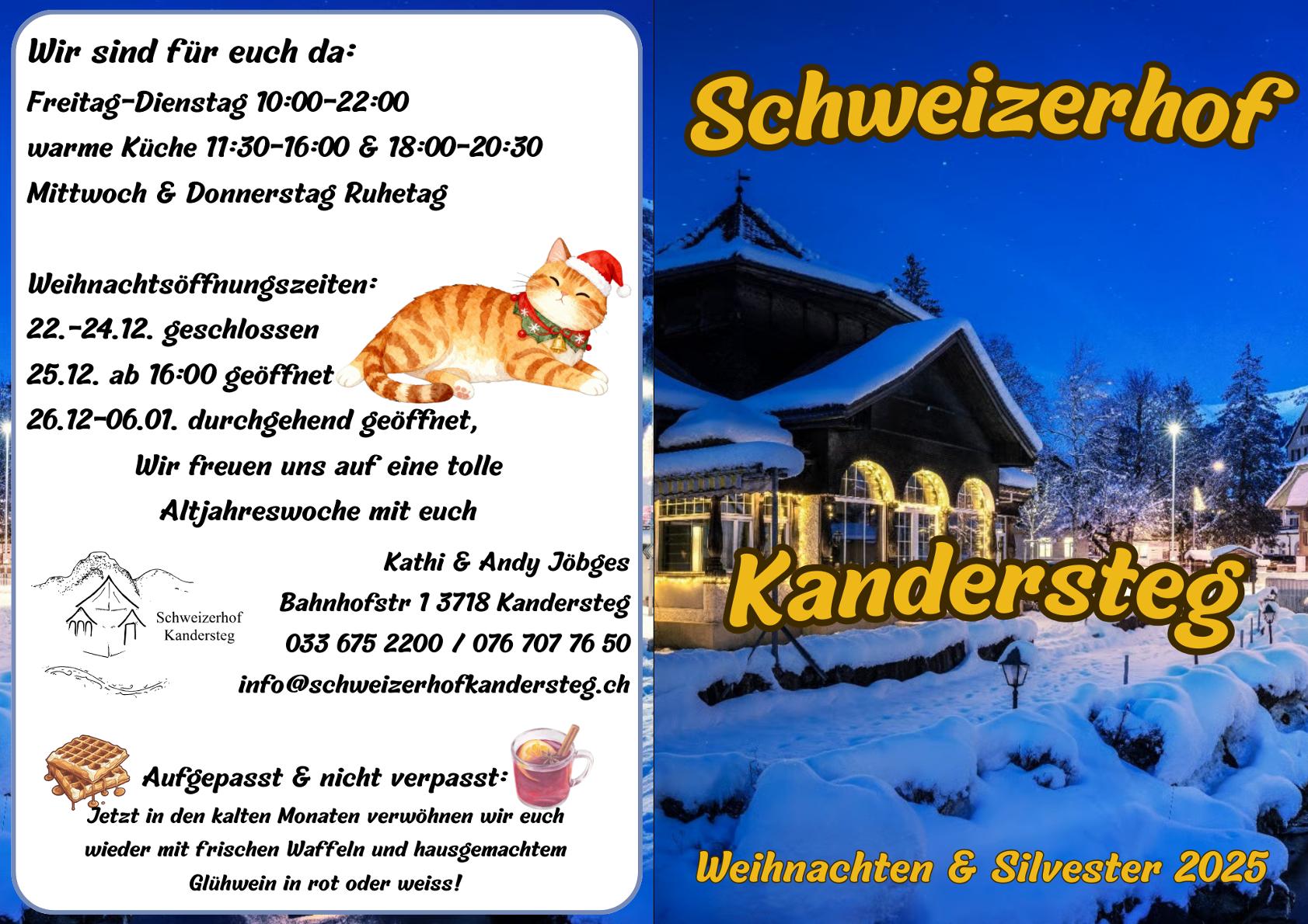 Eingebettet im Herzen des wunderschönen Kanderstegs, liegt unser Restaurant 'Der Schweizerhof'.